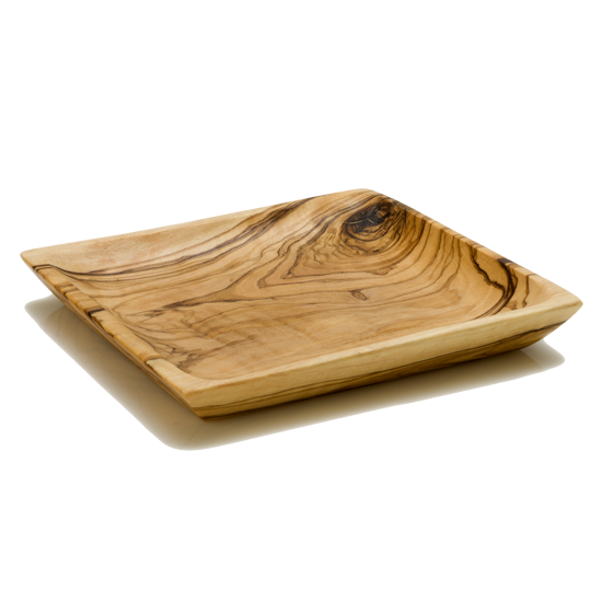 Plat carré en bois d'olivier fait à la main de 10 cm, 12 cm et 14 cm