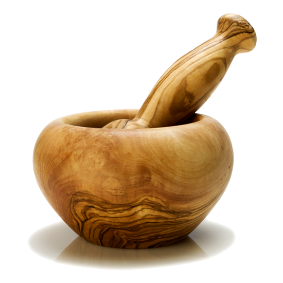 Mortier fini en bois d'olivier fait à la main de 10 cm,12 cm, 14cm et 16 cm