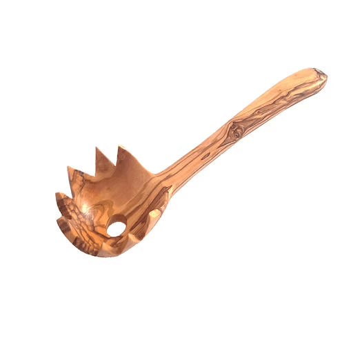Découvrez notre louche à spaghetti en bois d'olivier naturel de 30 cm, réalisée artisanalement dans un petit atelier familial. Façonnée à la main, elle allie robustesse et élégance pour servir vos pâtes avec facilité et style.