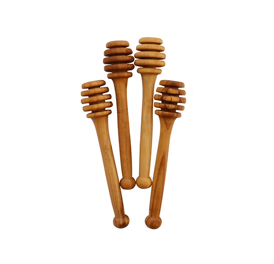 Lot de 4 tourne-miel en bois d'olivier faits à la main de 13 cm